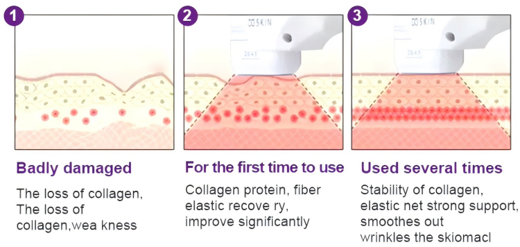 Use of different depths (3.0mm, 4.5mm) of therapeutic cartridges to focus the accurate energy on the vaginal collagen layer and fascia layer. It uses focused ultrasound to produce a thermal effect of 65 ° ~ 70 ° to promote the reconstruction of collagen fibers and tendons in the deep vaginal mucosa and tight the contraction of the fascia layer, which increases the production of new and tender tissues, changing the vaginal dryness, promoting vaginal mucus secretion during sex, and making sure that the vagina is moist and tender.